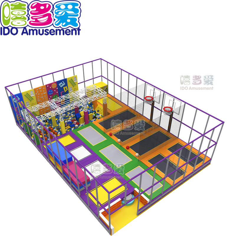 Kids Jump Adventure Fitness Equipment Gymnastics Trampoline Park With Basketball Hoops Set